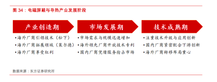 同时,电磁屏蔽和导热材料生产环节毛利率一般高于器件加工环节,因此深耕材料环节的公司有望获得高于下游的毛利率水平,而同时具备材料生产与器件加工的公司毛利率水平也有望高于普通的器件加工厂商。