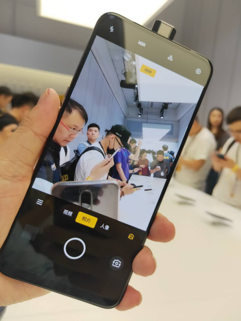 realme X在设计上的另一突破是在全新的无刘海全面屏上搭载新一代的中置升降摄像头,前置摄像头升降速度只需要0.74秒,并且能保证20万次的升降使用寿命。